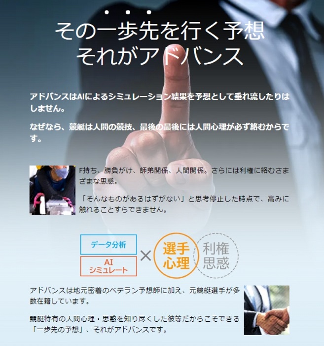 新競艇予想サイト「競艇アドバンス(ADVANCE)」の予想の特徴