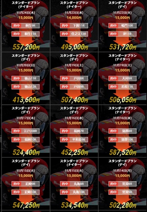 | プロフェッショナル | 65万円~ | 15,000円 | 3連単3~10点 | 2レース | 650pt |