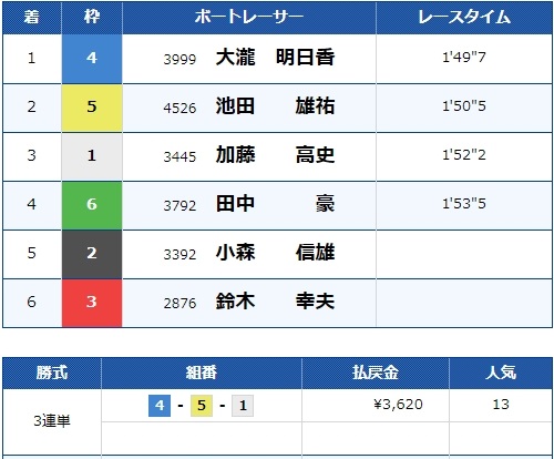 ただ、4号艇大瀧選手軸一本で行くのは凄いなーという思いです。