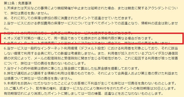 最近利用規約にこのような文章が書かれているサイトをよく見かけますが、これって同じプランを購入した人が複数人いても、提供される買い目が人ごとに異なるということです!