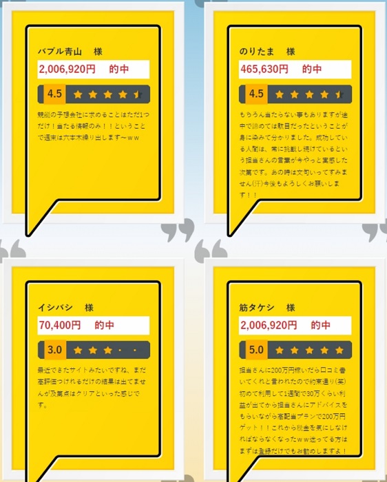 七福神という名前にふさわしいサイトデザインや会員ページの使いやすさなど、サイトの作りは良かったものの、無料予想の質が残念すぎる結果となりました。