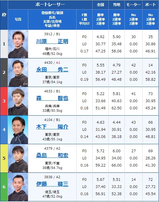 - 【1号艇】:川原 正明選手(B1/福井)