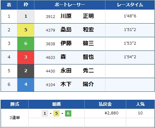 - 【6号艇】:伊藤 啓三選手(A2/埼玉)