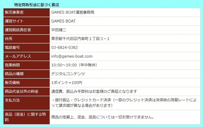 しかし、ゲームズボートは電話番号の記載はあるものの、電話対応を行っているかどうかの記載はありませんでした。