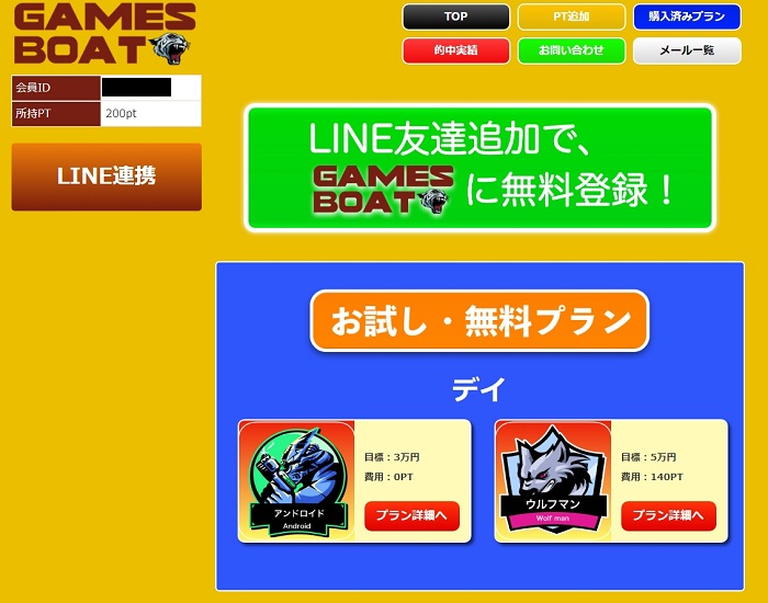 「ゲームズボート(GAMES BOAT)」の有料予想プランについて