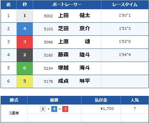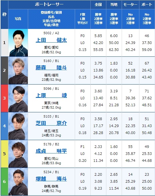 - 【1号艇】:上田 健太選手(A2/愛知)