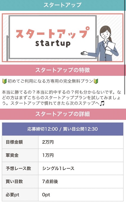 | ひるなか | 30万円 | 2レース | 6点前後 | 2万円 | 300pt | |