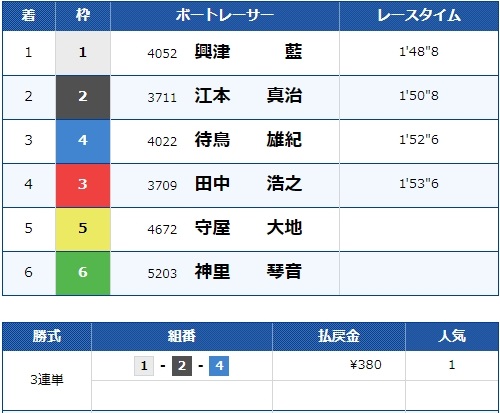 公開された予想は人気通り1号艇興津選手と2号艇江本選手を軸にした予想です。