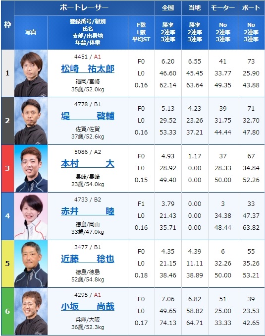 - 【4号艇】:赤井 睦選手(B2/徳島)