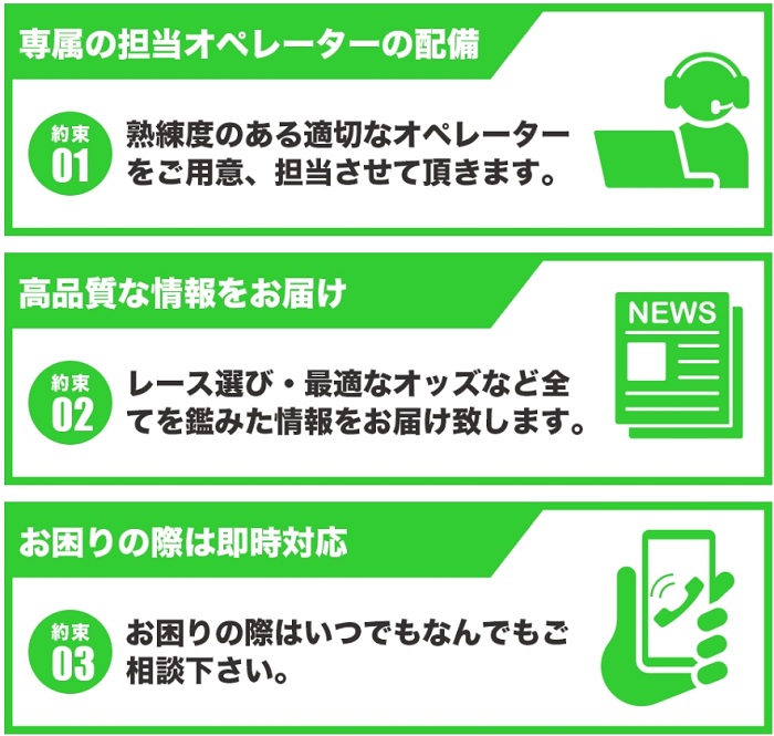 書いてあることは担当が即時サポートしてくれる、高品質な予想をお届けなど普通なことばかりです!