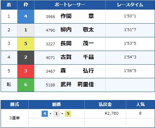 - 【4号艇】:作間 章選手(A1/東京)