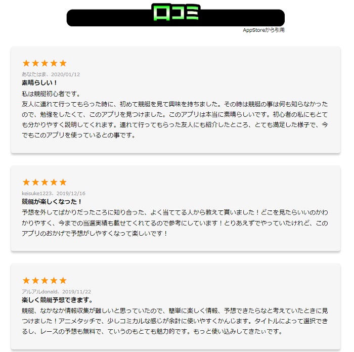 非会員ページの最後にはアプリバージョンの口コミも掲載されていました。