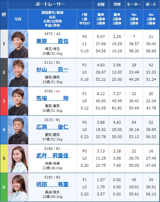 - 【4号艇】:広瀬 聖仁選手(B1/愛知)