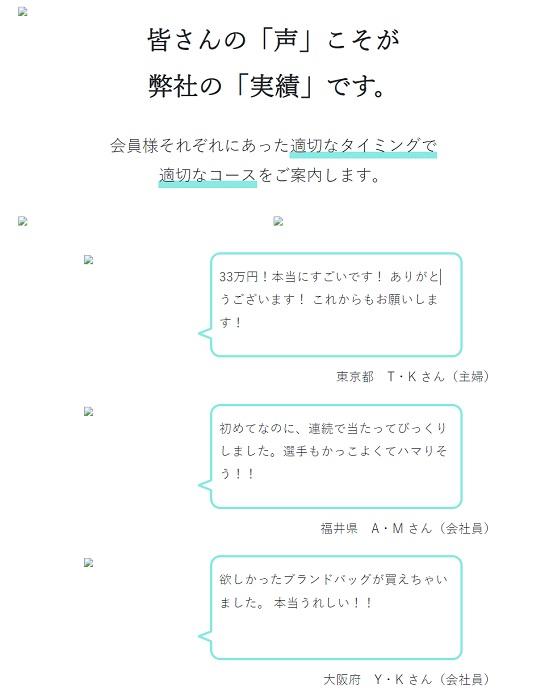 出来たばかりのサイトのはずなのにお客様の声が並んでいる
