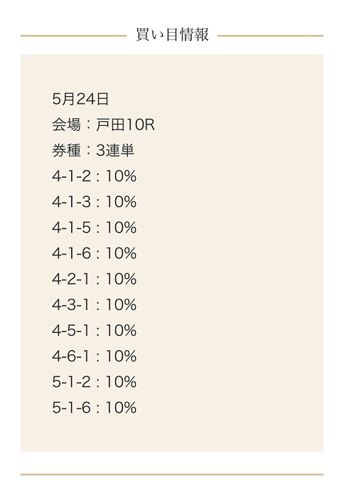 5月24日(水)戸田10Rの無料予想!