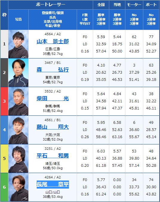 - 【4号艇】:藤山 翔大選手(B1/大阪)