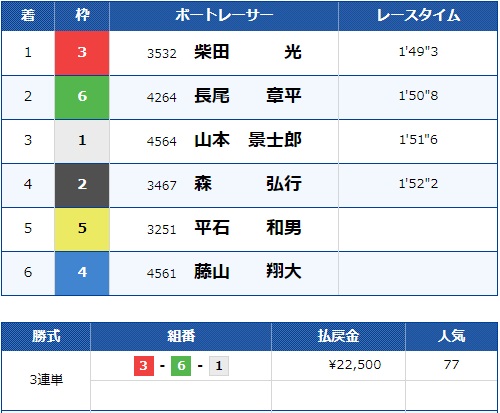 - 【3号艇】:柴田 光選手(A2/群馬)