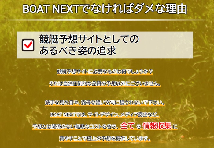 ボートネクストは競艇予想サイトとしてあるべき姿を追及してくれるのだとか。