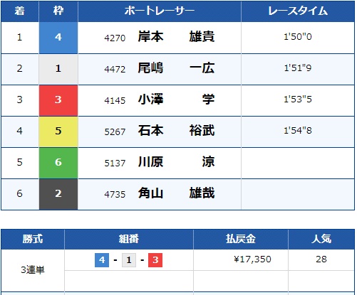 - 【4号艇】:岸本 雄貴選手(B1/三重)