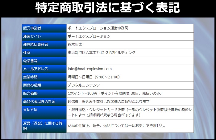 ちなみにボートエクスプロージョンには電話番号の記載がありません!