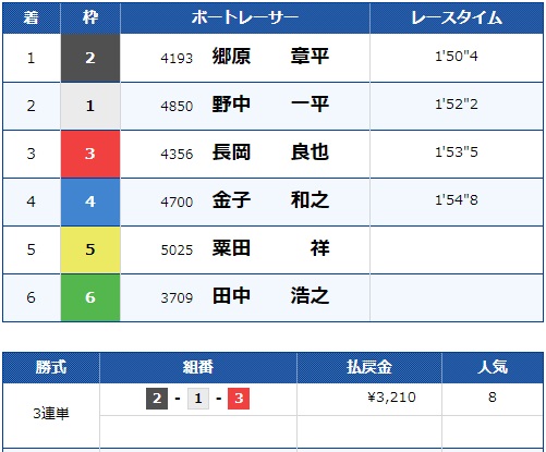 - 【2号艇】:郷原 章平選手(A2/福岡)