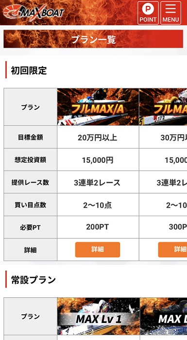 初回限定プラン3種類&常設プラン4種類とすっきり!「マックスボート」の有料予想プランの概要