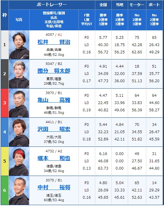 - 【1号艇】:松井 賢治選手(A1/兵庫)