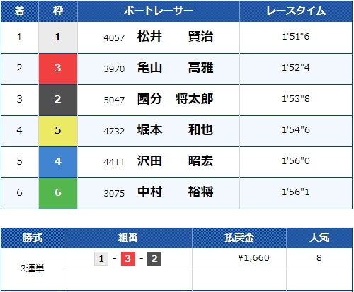 しかし公開された予想は、1号艇松井選手を軸に2号艇國分選手と3号艇亀山選手に注目した予想となっています!