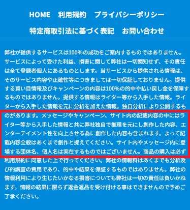 そのため、的中実績を捏造していたり、お客様の声を捏造していたりしても、「エンターテイメント性を求めた創作です。」と言われてしまえばなにも言い返せないのです。