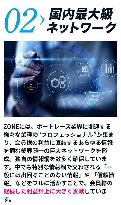 ゾーンには競艇に関するさまざまな業種のプロが集まっており、業界随一の巨大ネットワークを築いているのだとか。