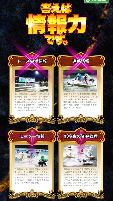 レース会場情報から選手情報、モーター情報などさまざまな情報が集められているのだとか。