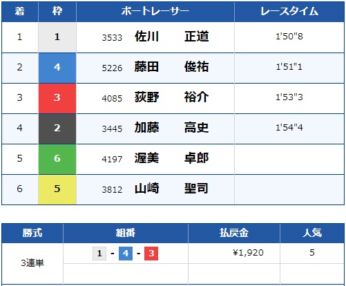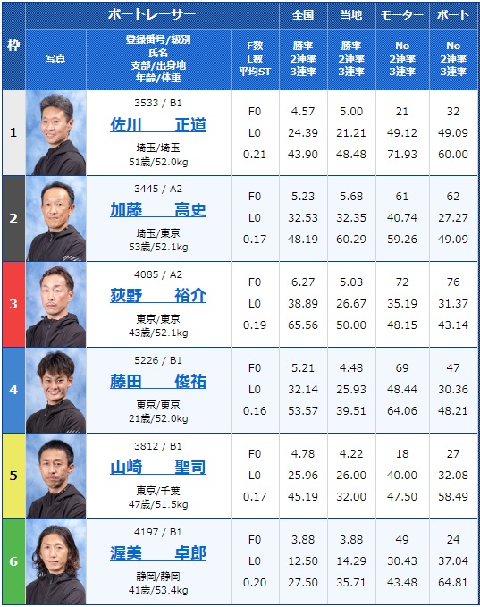 - 【1号艇】:佐川 正道選手(B1/埼玉)