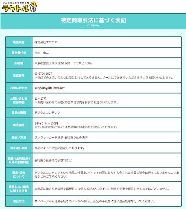 悪質サイト運営で有名な株式会社エウロパのサイト!「ラクトル」の基本情報