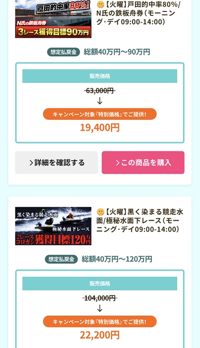 「キャンペーン対象情報」というプラン、セット売りと称して全9レースの予想を、414,000円から72,000円に値下げしているんです!