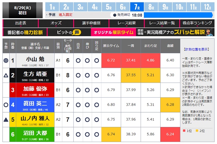ということで予想を見ていきましょう! 見ていくのは8月29日蒲郡7Rの予想です。