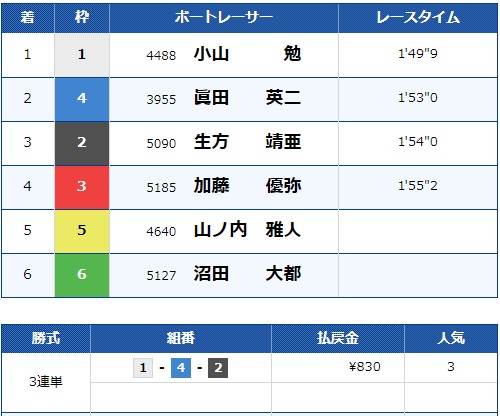 - 【1号艇】:小山 勉選手(A1/埼玉)
