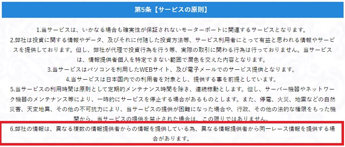 「弊社の情報は、異なる複数の情報提供者からの情報を提供している為、異なる情報提供者から同一レース情報を提供する場合があります」