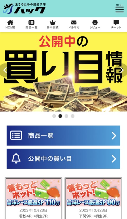 ハックは悪質サイト運営で有名な株式会社エウロパ、常昇社が運営している競艇予想サイトです! 非会員ページや会員ページなど、デザインや使いやすさは良いのですが、良いと言える点は本当にそこだけ! 有料予想や無料予想など、肝心な部分は曖昧にされていたり情報を詰め込みすぎていたりと、ごまかしながら運営しています。