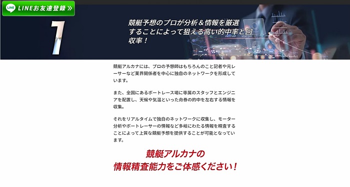 1つ目の強みとして、「競艇予想のプロによる分析と情報収集」が挙げられています!