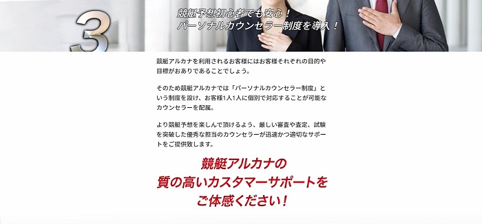 競艇アルカナではパーソナルカウンセラー制度を設けており、ユーザー1人1人に個別対応しているといいます!