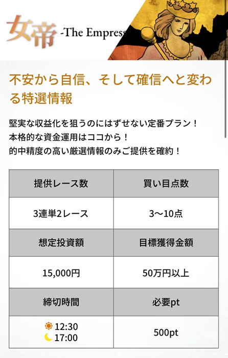 女帝は的中重視で堅実な勝負ができる定番プランだそうです。