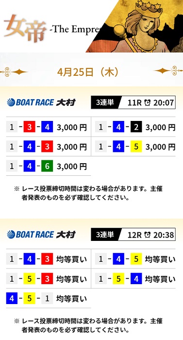 また、常設プランである「女帝」の的中報告もよく見られますね。