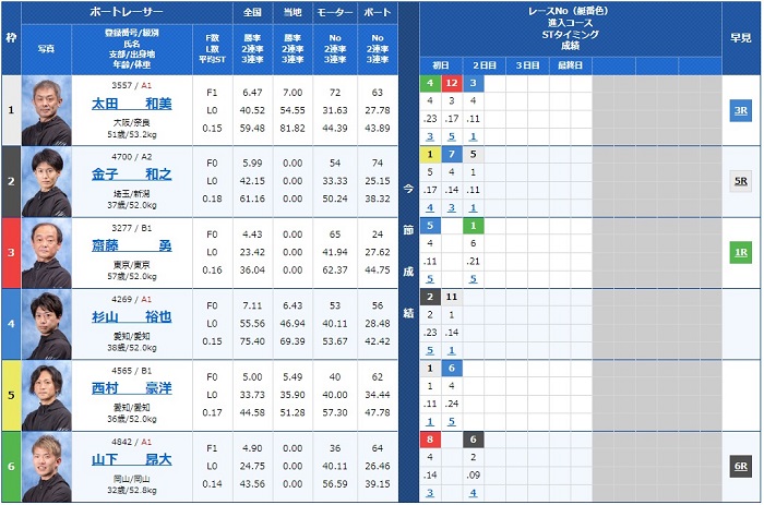 - 【1号艇】:太田 和美選手(A1/大阪)