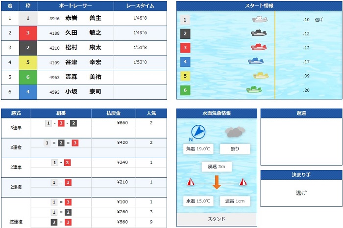 公開された予想は、1号艇赤岩選手を軸に、3号艇久田選手にも注目した予想となっています!