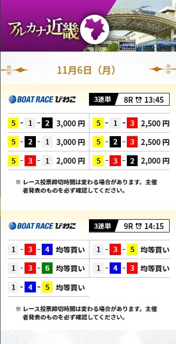 また、競艇アルカナは常設プランが少ないため、しっかりレースを厳選しているように感じます。