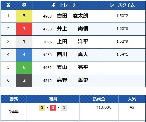 - 【6号艇】:山下 昂大選手(A1/岡山)