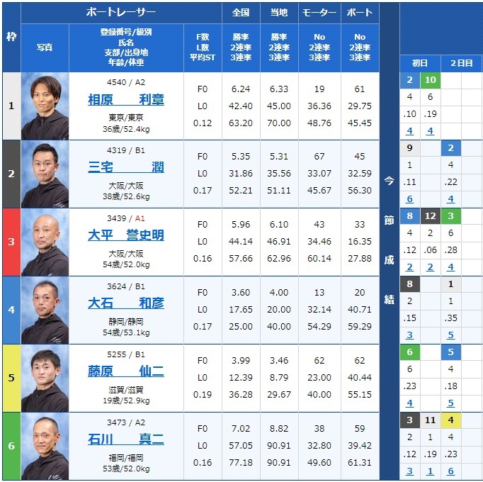 しかし、2号艇にはA2ながら勝率の高い松村康太選手、アウトコースにも谷津選手や實森選手がいたりとなにか起きそうなレースですね!