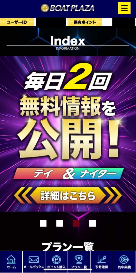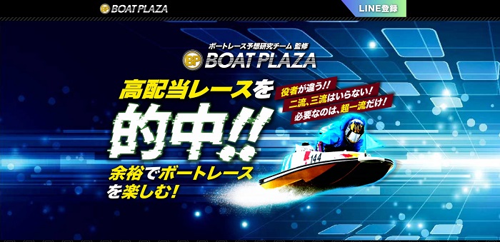 ボートプラザというサイト名と、いかにも競艇予想サイトというデザインが目に入ります!