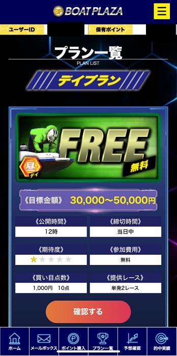 ボートプラザの有料プランは以下の通りです。
