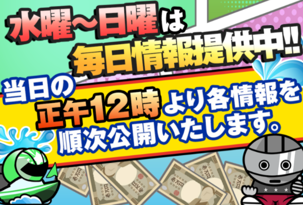 加えて、提供日も無料予想と同じで、水曜日から日曜日ということからサイトに書いてある「競艇で毎日稼げる情報を公開中」という文章と矛盾しています。